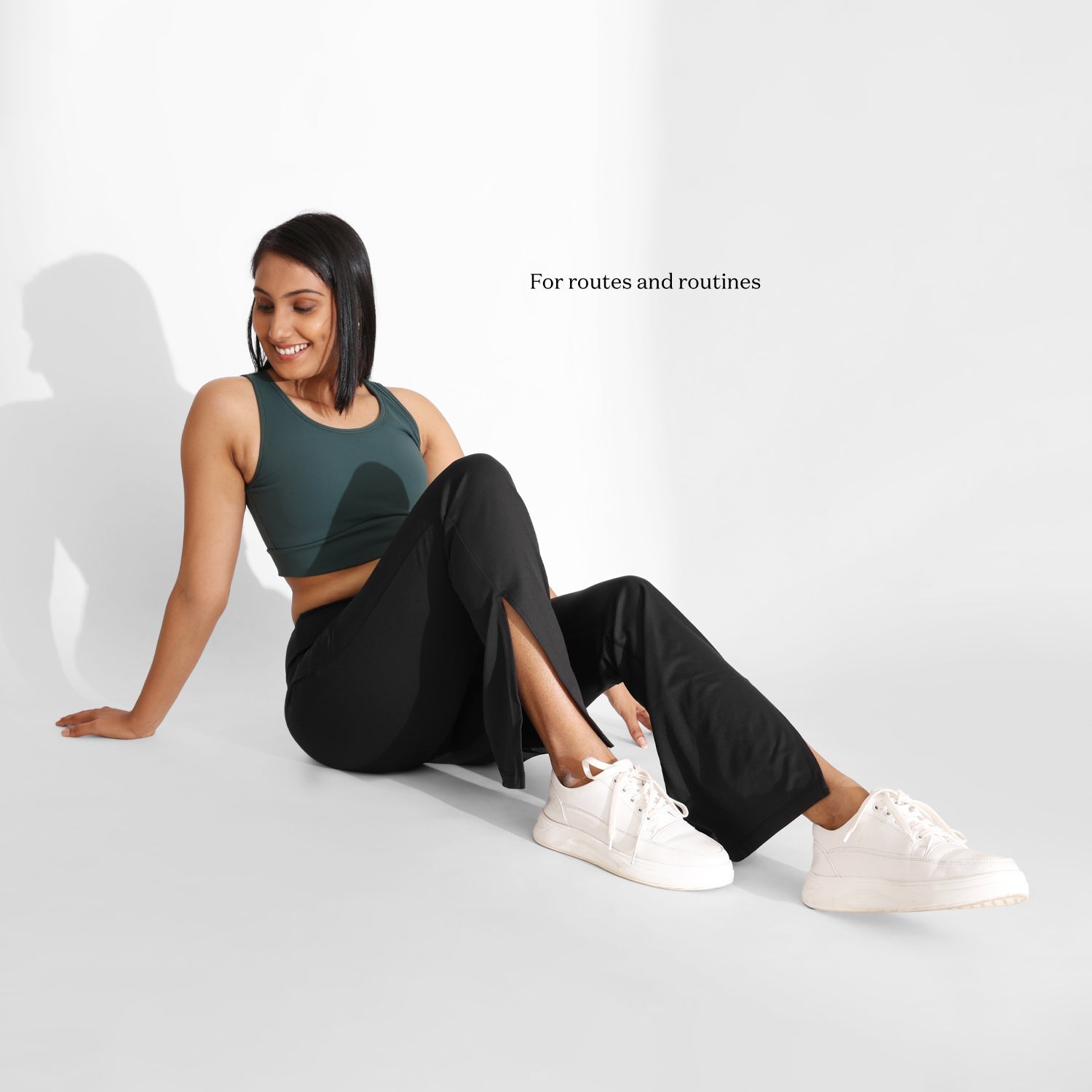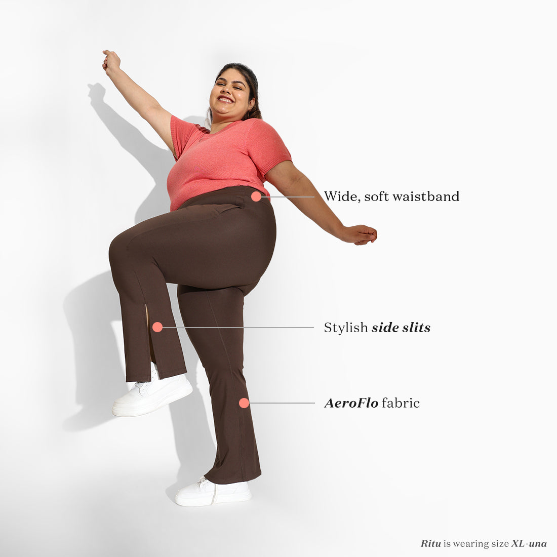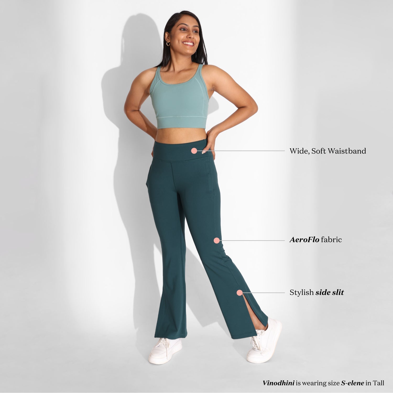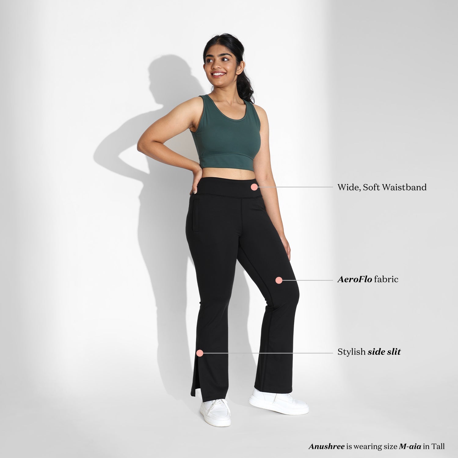 Stride in style and move unrestricted in our all-new On-The-Go Slit Flare Pants. Flaring gently from the knees, the side-slits offer a non-restricting fit and totally upstyle your move-wardrobe. Blending style and versatility, your slit flares are ready to have you moving, winning and celebrating.