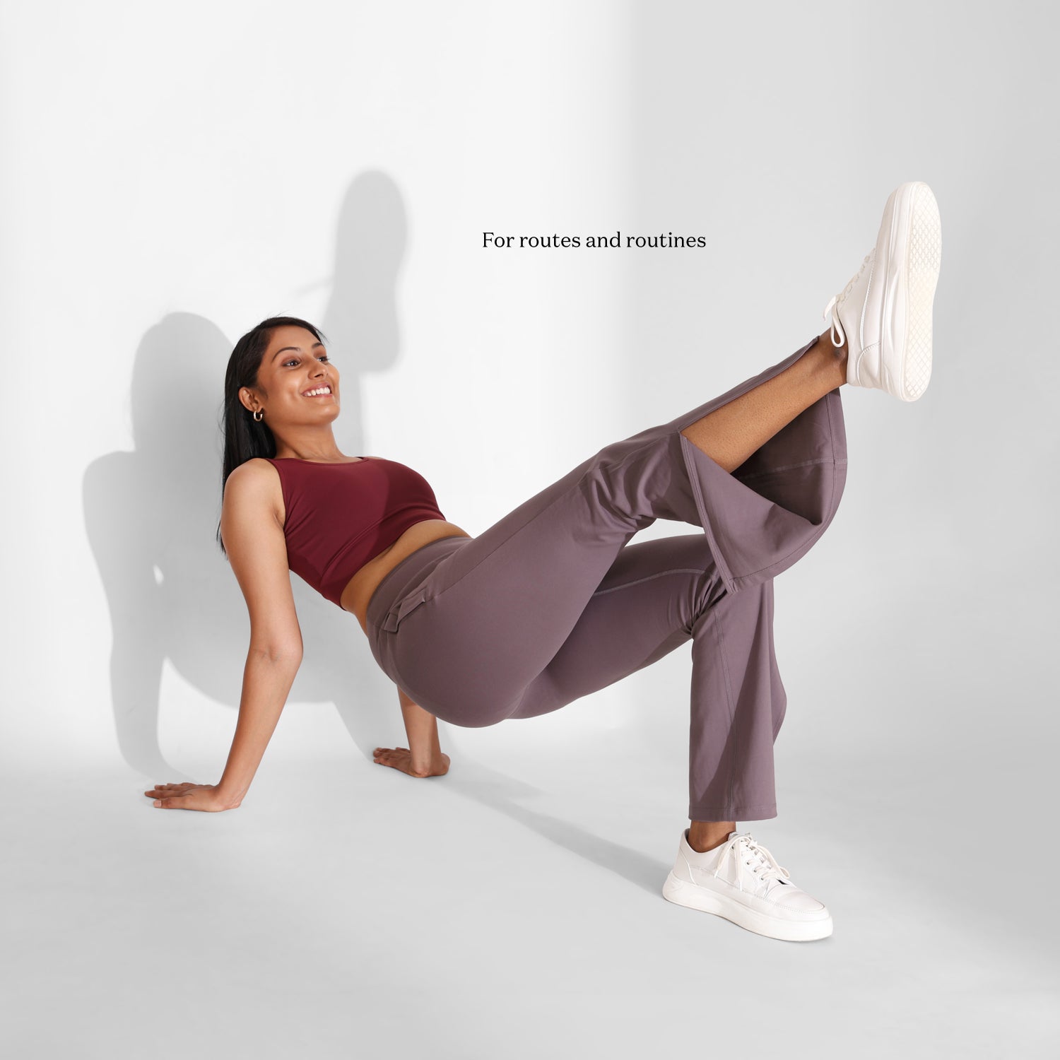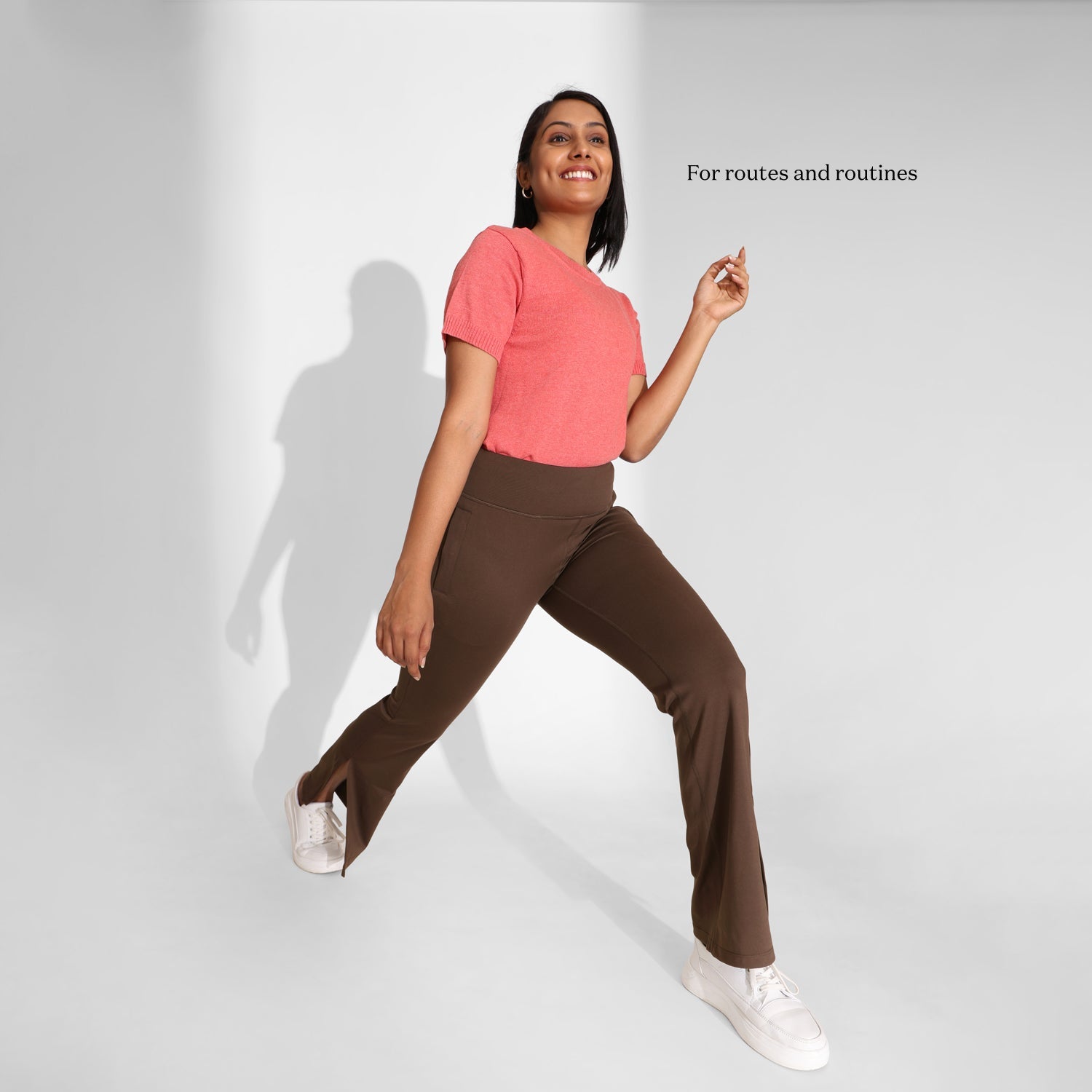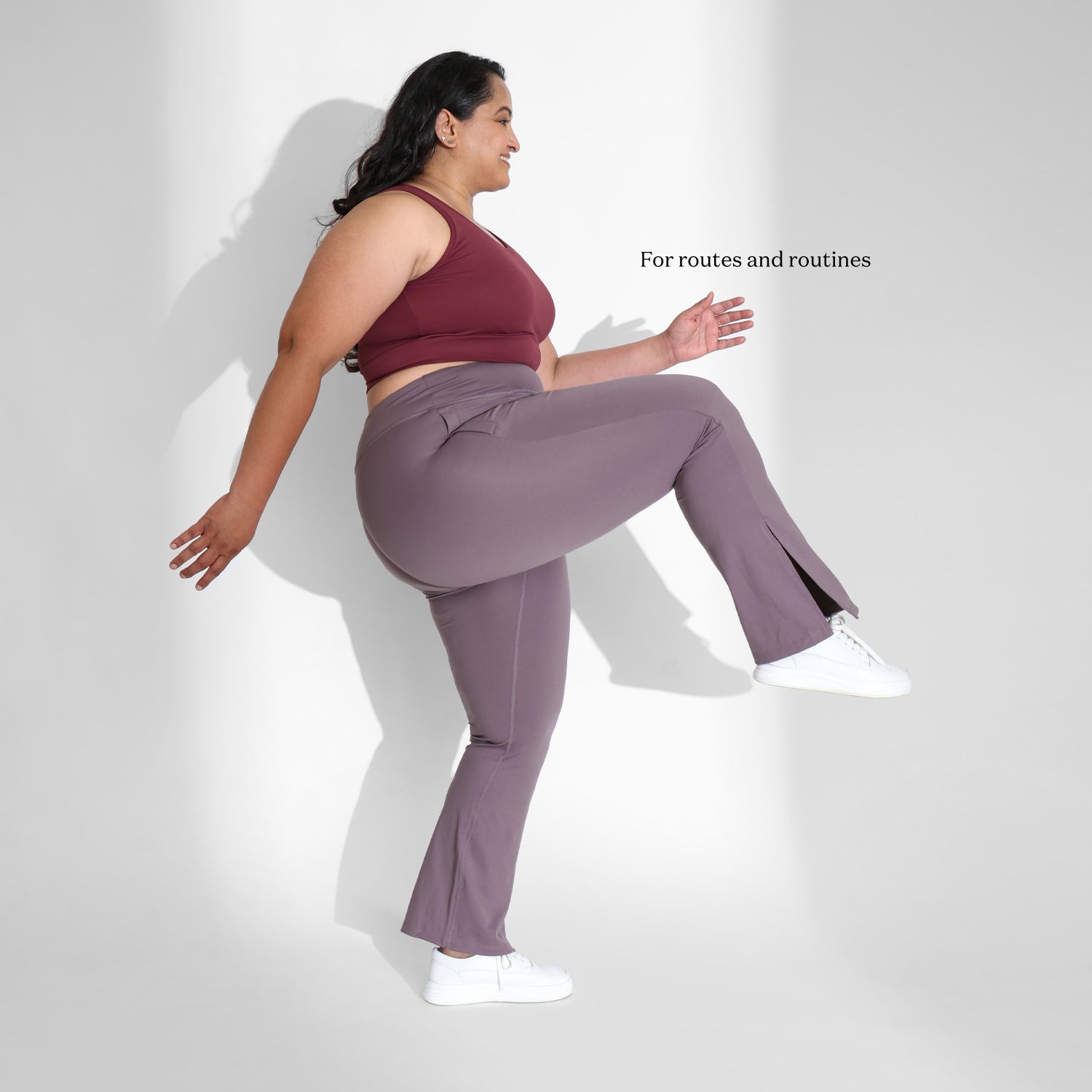 Stride in style and move unrestricted in our all-new On-The-Go Slit Flare Pants. Flaring gently from the knees, the side-slits offer a non-restricting fit and totally upstyle your move-wardrobe. Blending style and versatility, your slit flares are ready to have you moving, winning and celebrating.