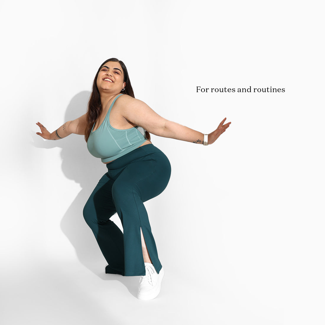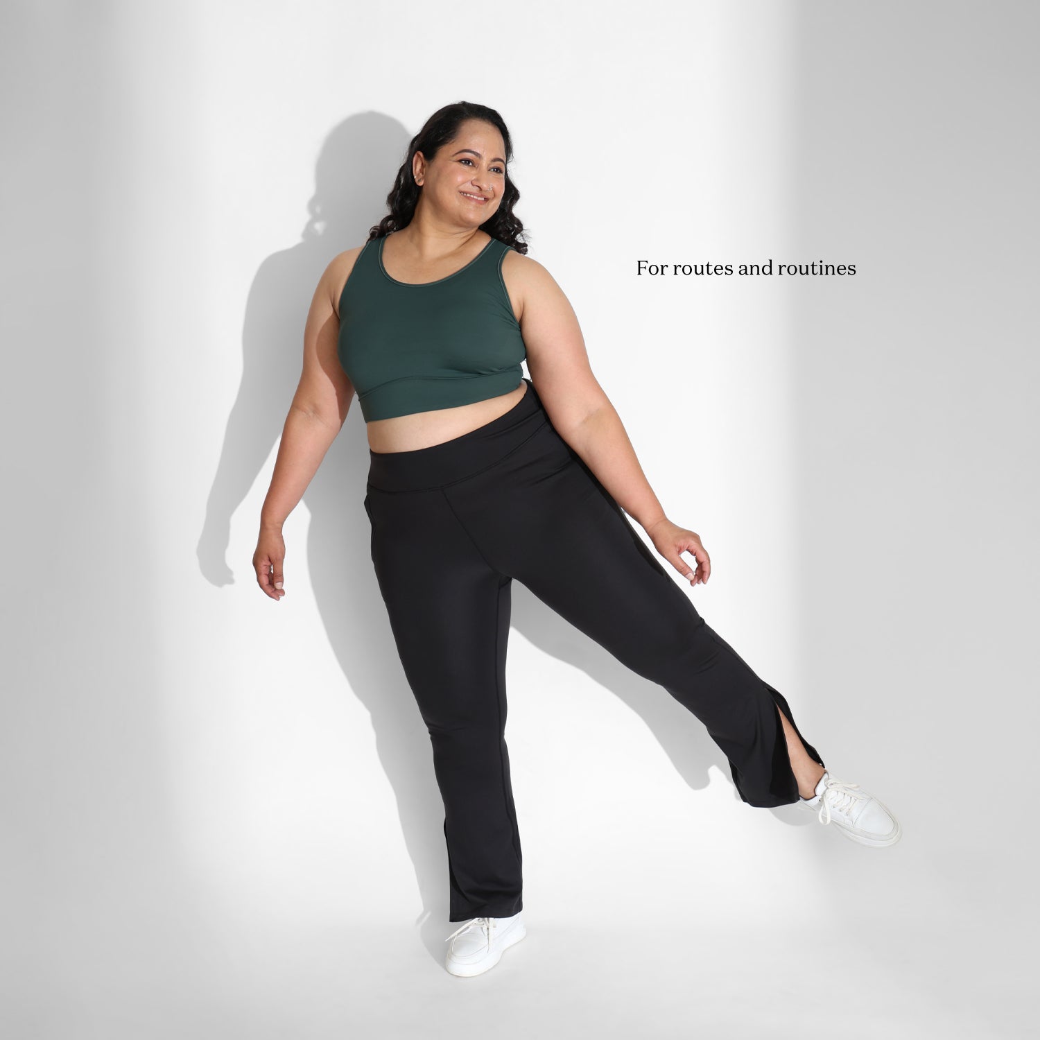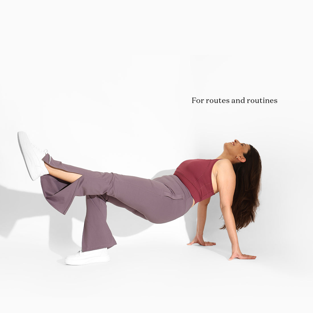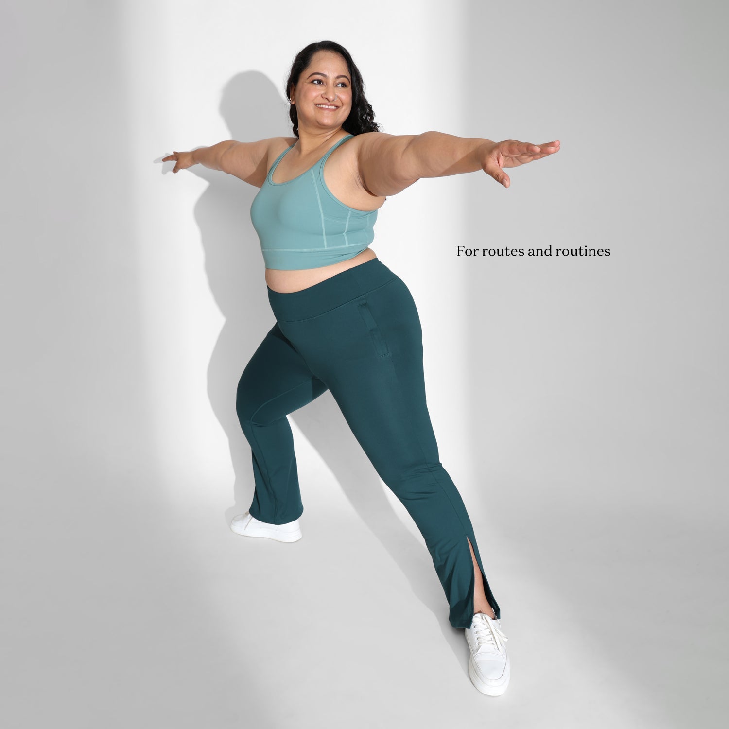 Stride in style and move unrestricted in our all-new On-The-Go Slit Flare Pants. Flaring gently from the knees, the side-slits offer a non-restricting fit and totally upstyle your move-wardrobe. Blending style and versatility, your slit flares are ready to have you moving, winning and celebrating.