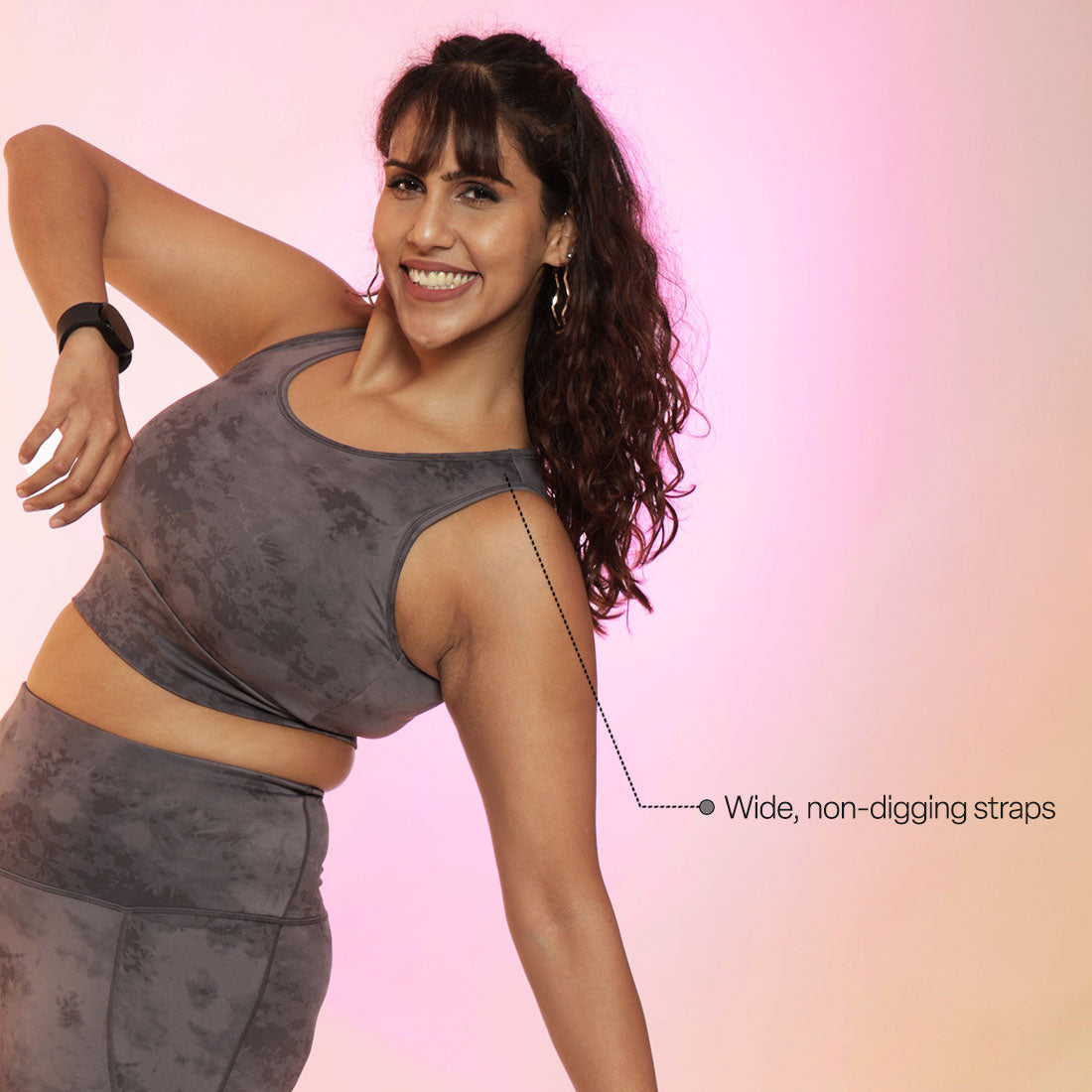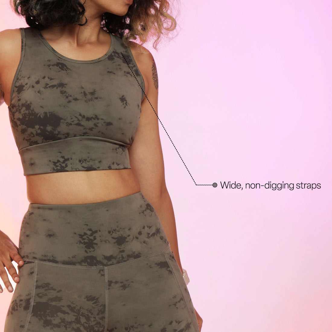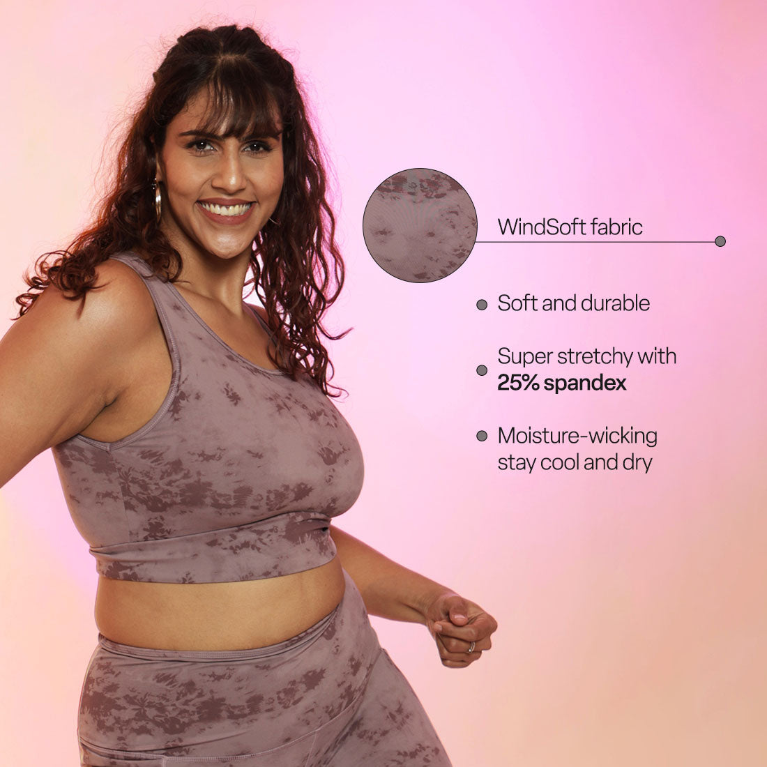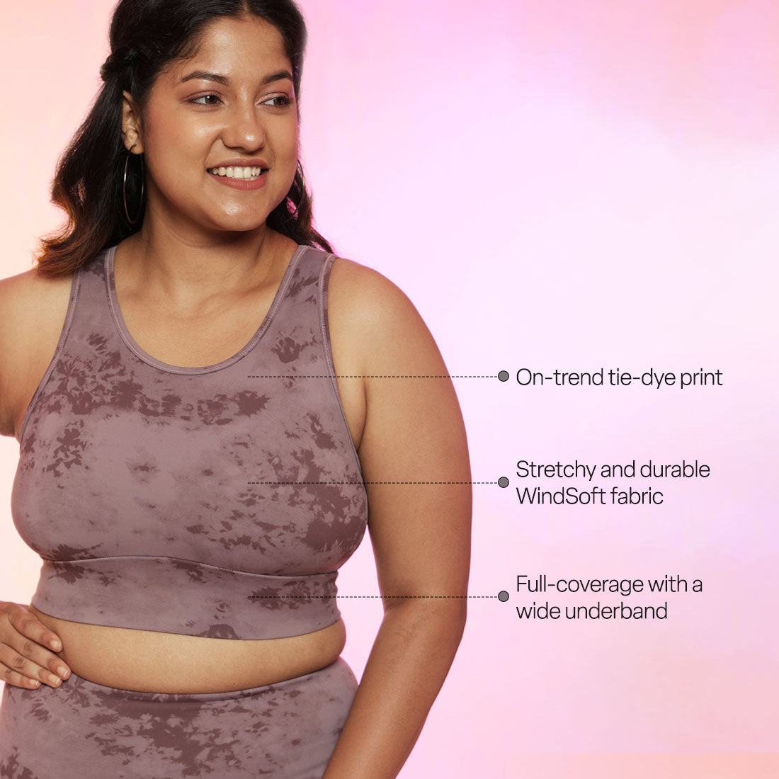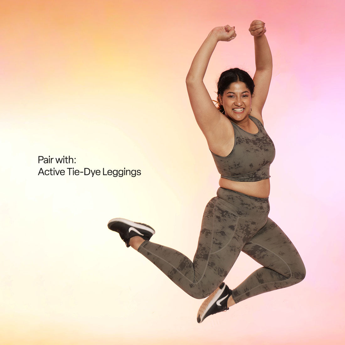 Get our super trendy tie-dye printed sports bras with removable cups today. We engineer for women who move.