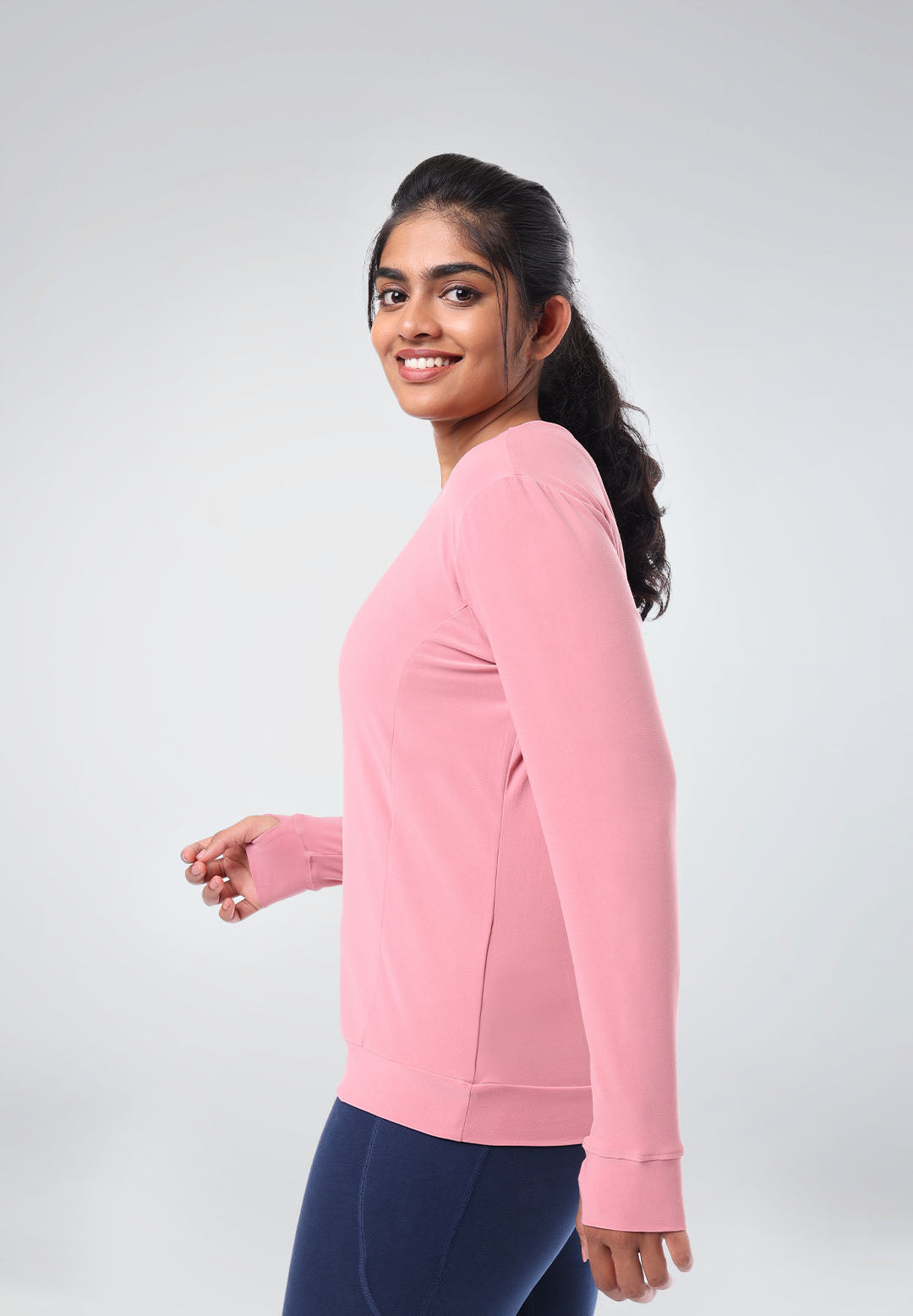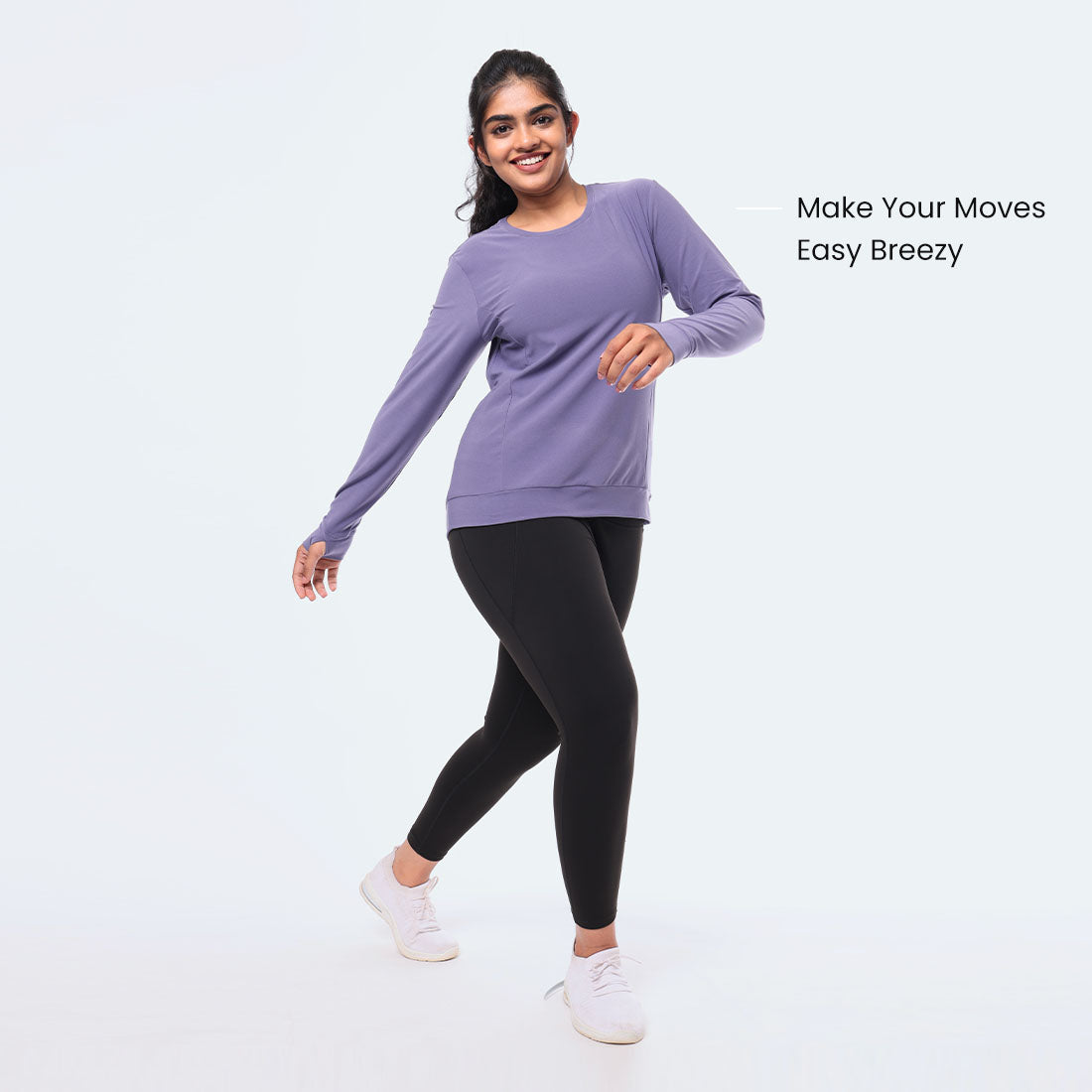 Your favourite sweat-wicking BreezeFlo fabric is back - this time in a super-functional top that is ever so light and brings you delight! Move free, in comfort and ease with our Breezy Thumbhole Top which comes with a strategically placed cuffed thumbhole that ensures that your sleeves stay in place - keeping you feeling light and comfortable. Full sleeves for more comfort and coverage during workouts? We heard you! With a shaped non-clingy fit, drop shoulder, and round neckline - we bring you a super light top that lets you #keepmoving non-stop.