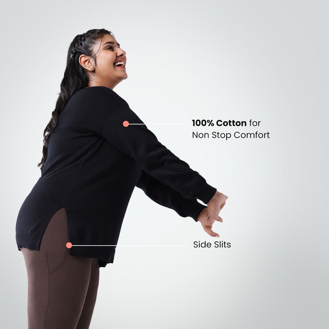 For the love of cotton (and our love for you), we bring you At-Ease CottonKnit Tops (yesss, the ones you love so much) but this time, in full sleeves with cuffs! Made using 100% cotton, ‘CottonKnit’ lets you move, breathe and sway non-stop. For thousands of women like you who love to move, we decided to enhance the level of comfort in our topwear and bring you a product that is durable, breathable and definitely lovable. And so, we made At-Ease Cotton Knit tops using 100% premium cotton to let you move free, breathe easy and fall asleep afterwards (just in case you want to).