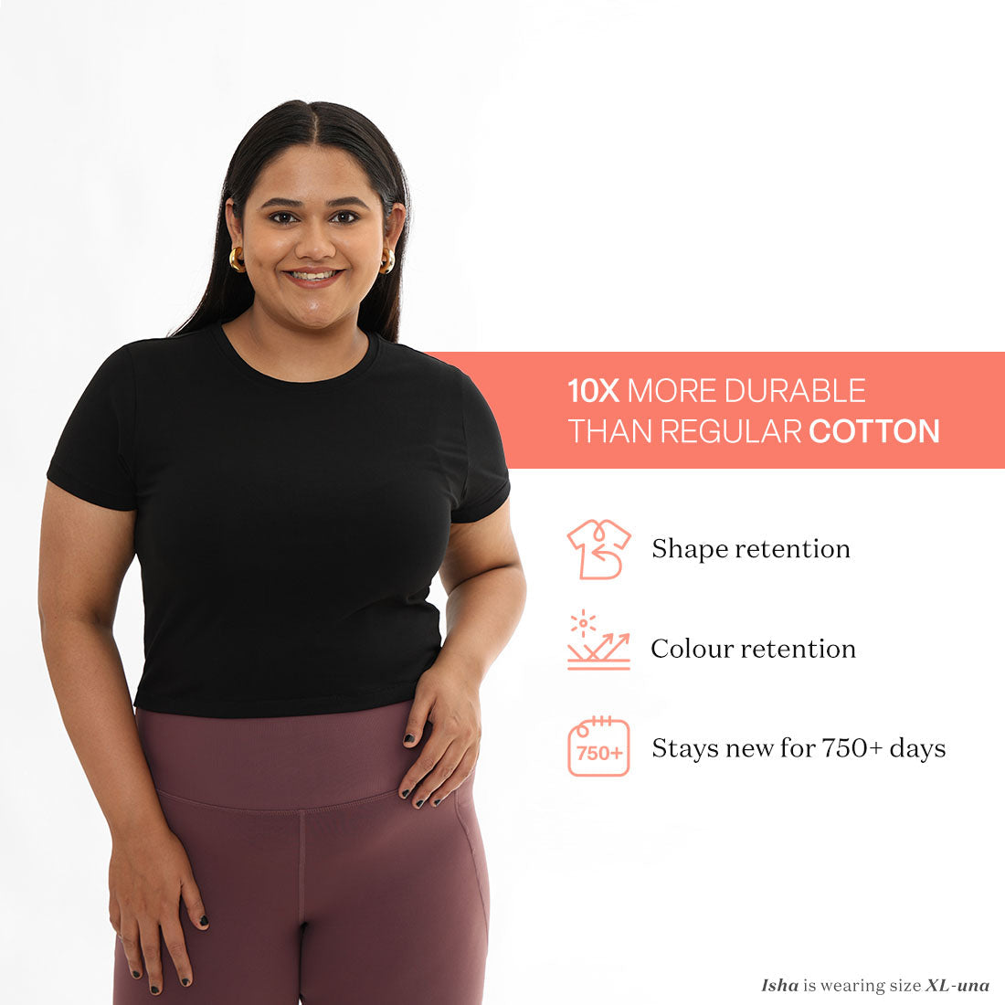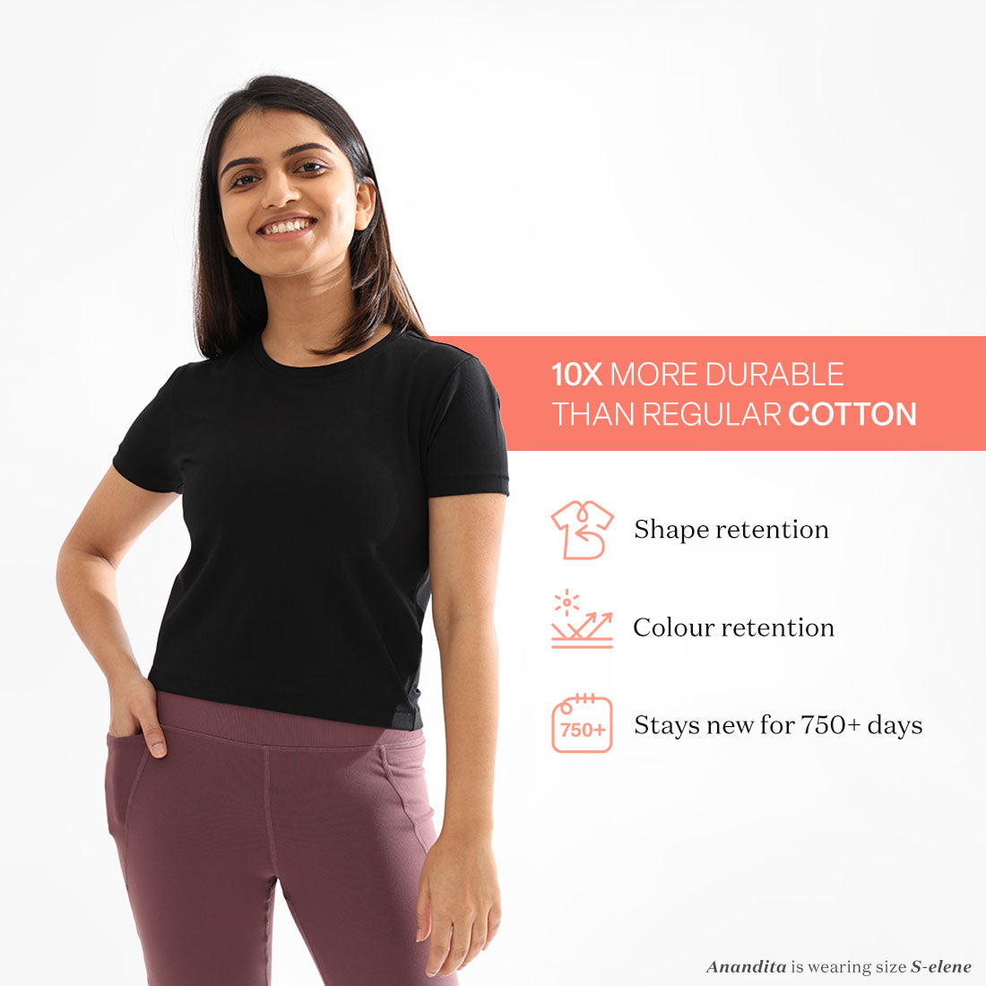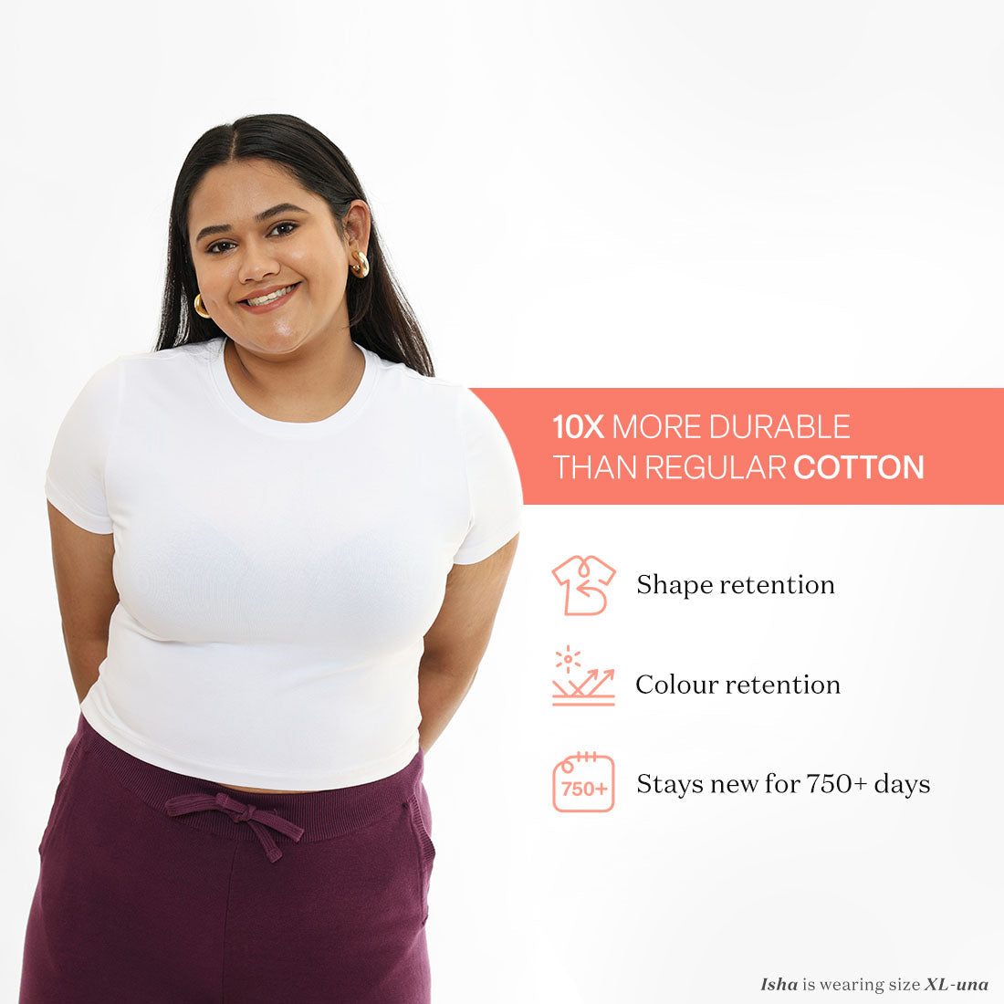 Literally, The Last Tee you will need to buy in a long, long time. We engineered this essential tee using cotton that is 10x more durable than regular cotton. It retains its colour, shape and size even after multiple washes. So, no shrinkage, no fading, no falling apart on you. Say hello to a long-lasting tee-lationship (750+ days) with your move-buddy for years to come.