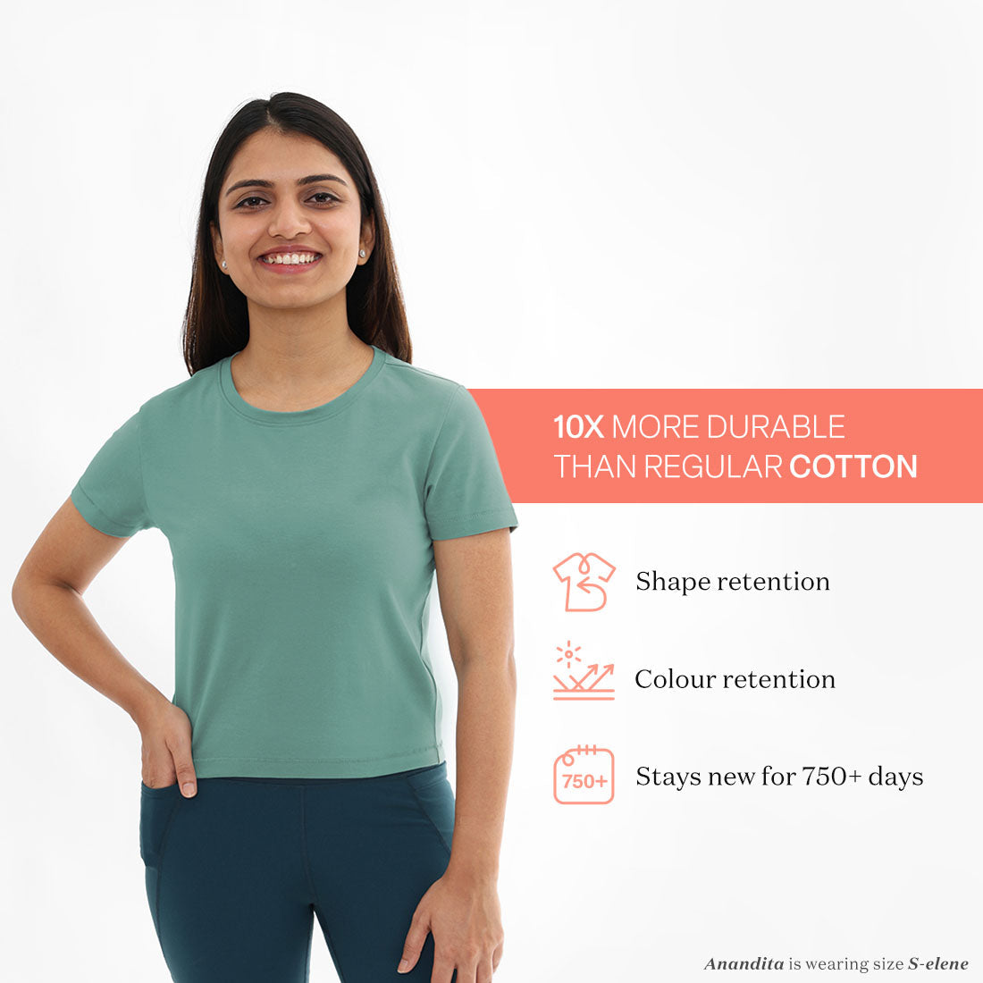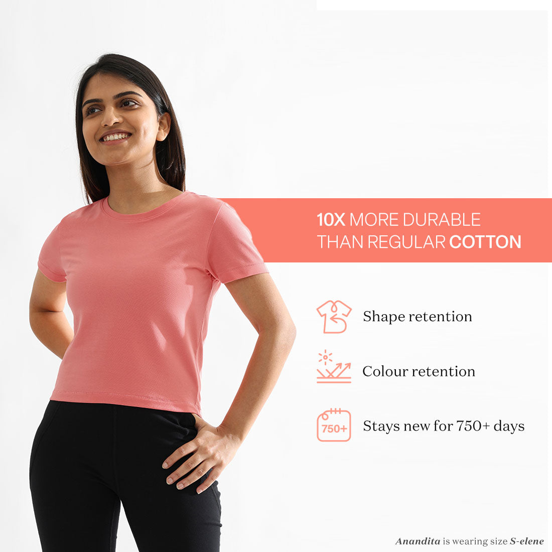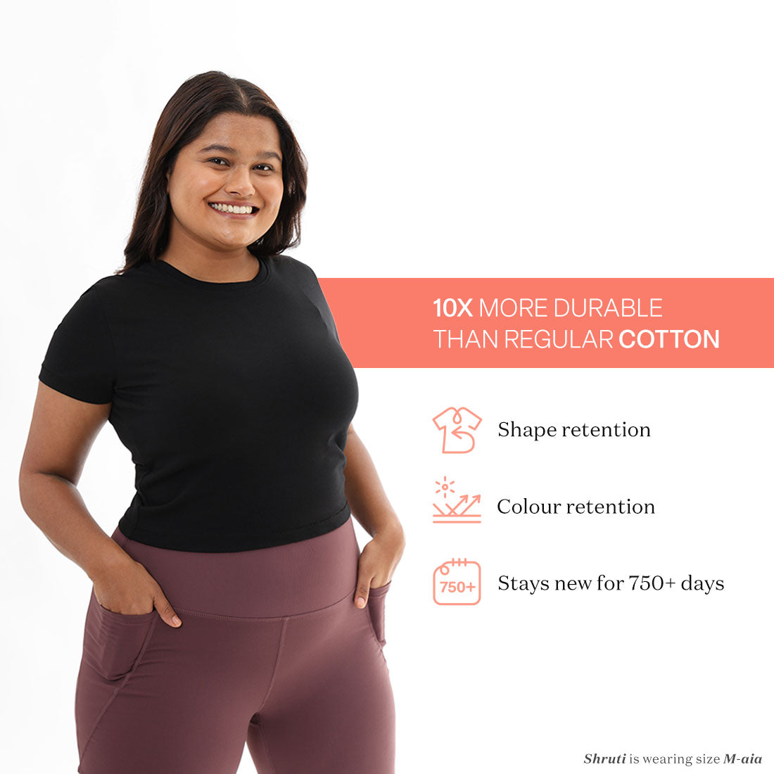 Literally, The Last Tee you will need to buy in a long, long time. We engineered this essential tee using cotton that is 10x more durable than regular cotton. It retains its colour, shape and size even after multiple washes. So, no shrinkage, no fading, no falling apart on you. Say hello to a long-lasting tee-lationship (750+ days) with your move-buddy for years to come.
