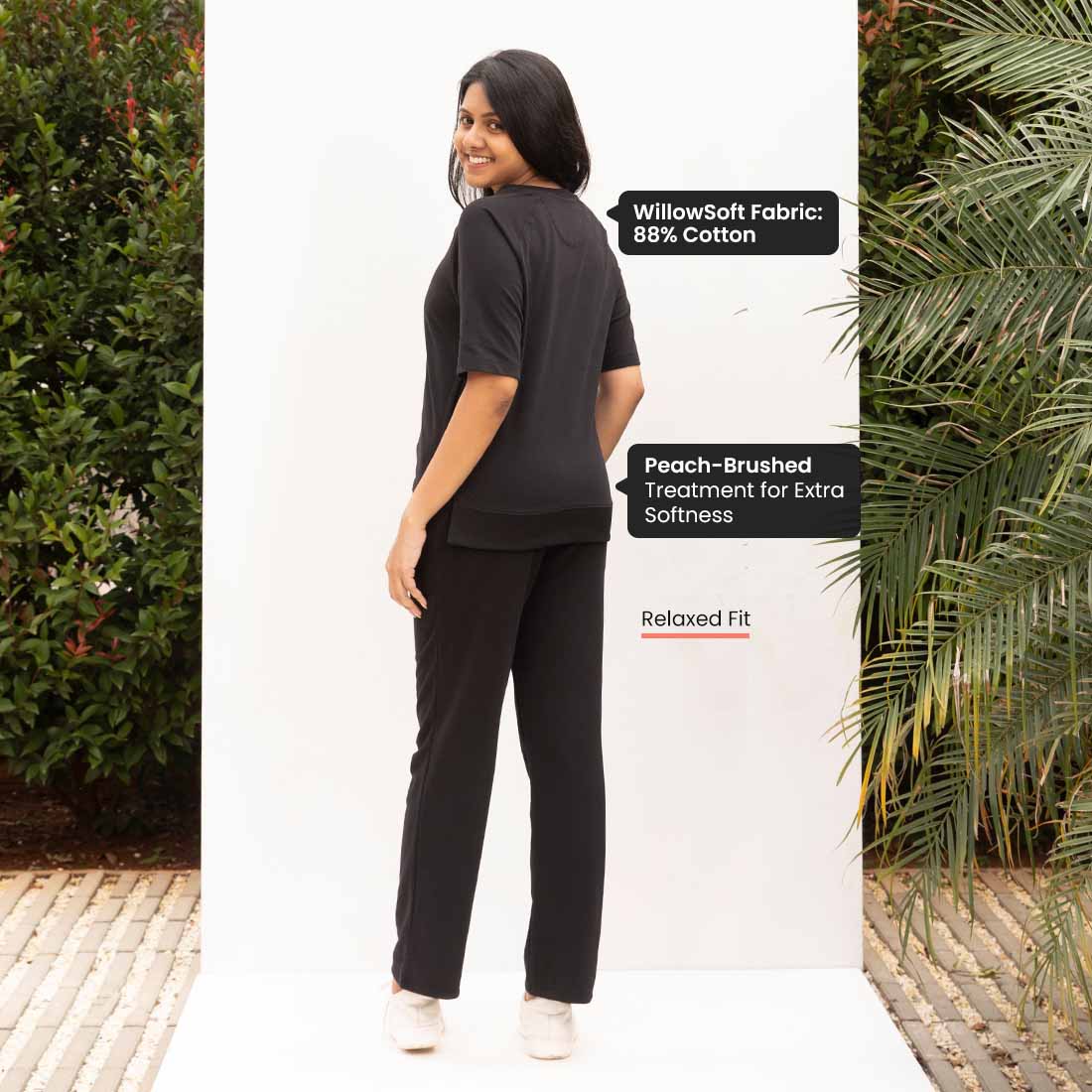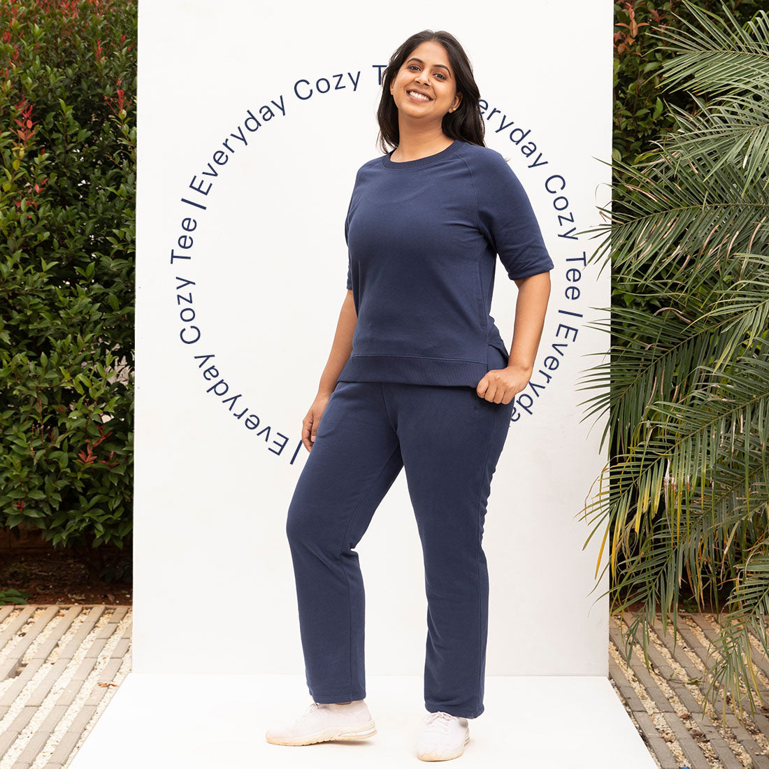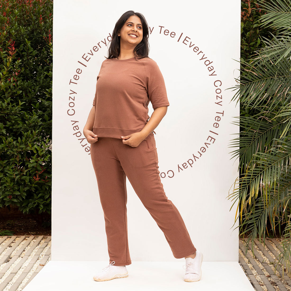We created ‘Everyday Cozy Tee’ with comfortable half-sleeves, a relaxed fit and 3 pockets (one is hidden, so it is super secure) for you to move around in added comfort. WillowSoft- comprising 88% Cotton and 12% Polyester is so soft, fluffy, giving you room to wear it all day, every day!