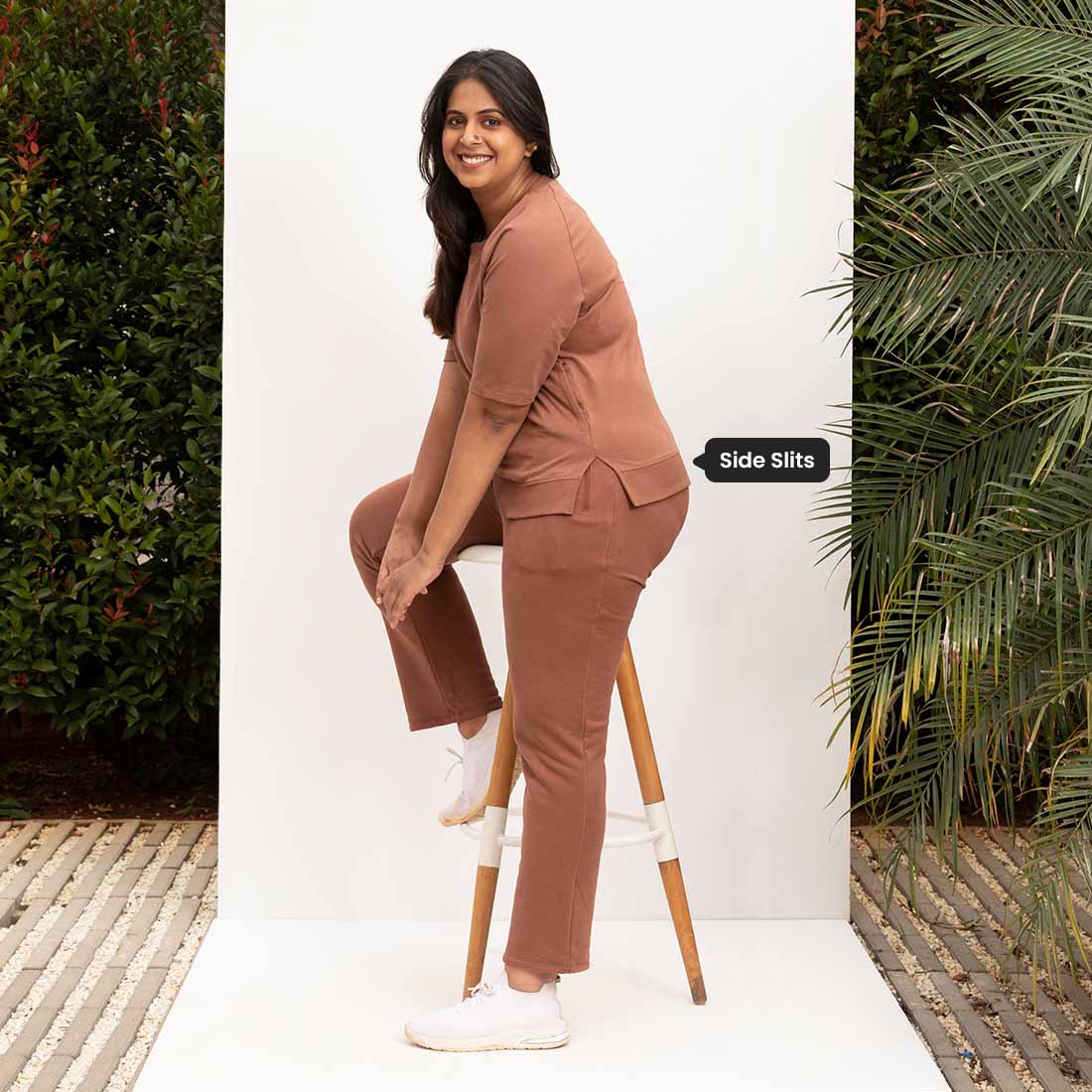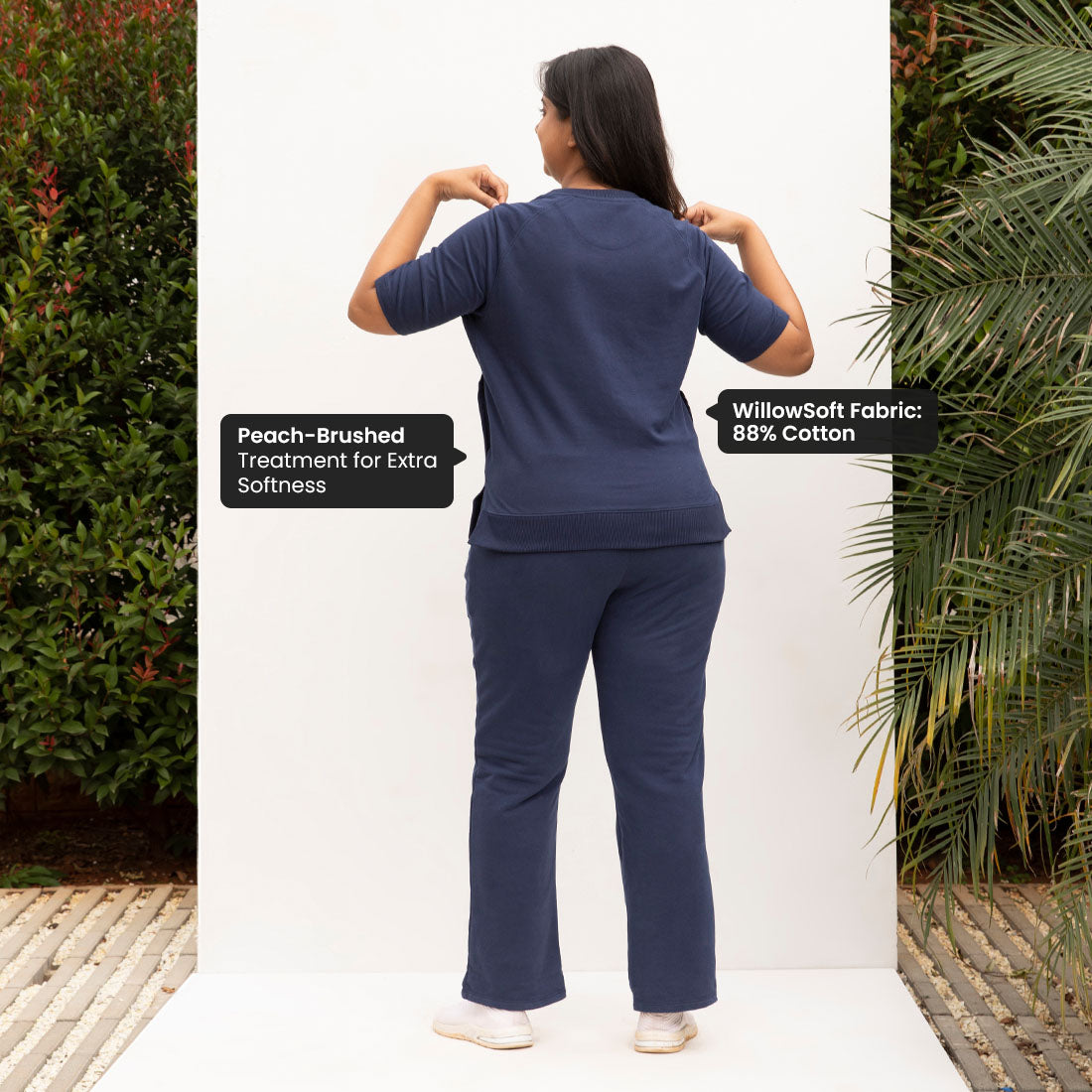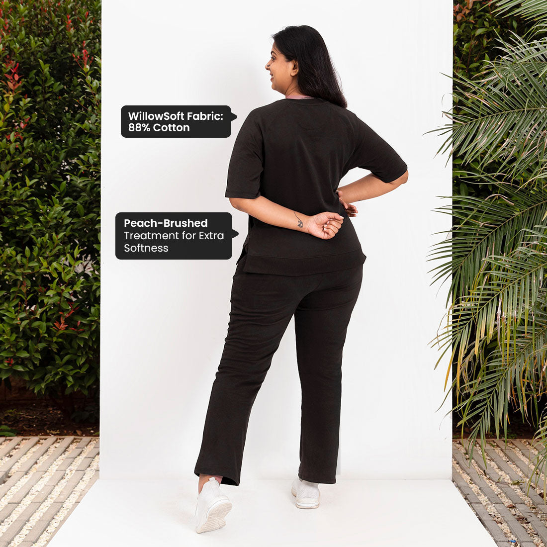 We created ‘Everyday Cozy Tee’ with comfortable half-sleeves, a relaxed fit and 3 pockets (one is hidden, so it is super secure) for you to move around in added comfort. WillowSoft- comprising 88% Cotton and 12% Polyester is so soft, fluffy, giving you room to wear it all day, every day!