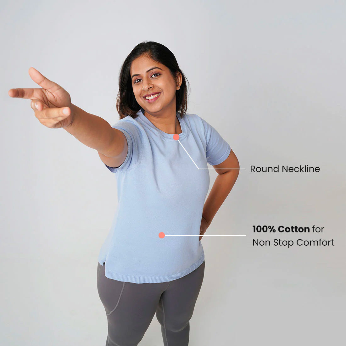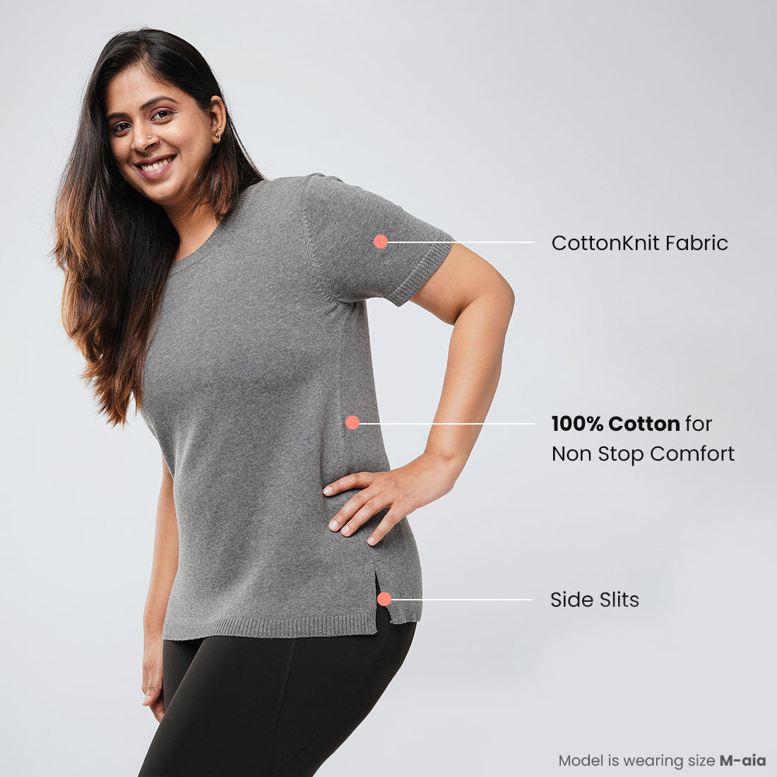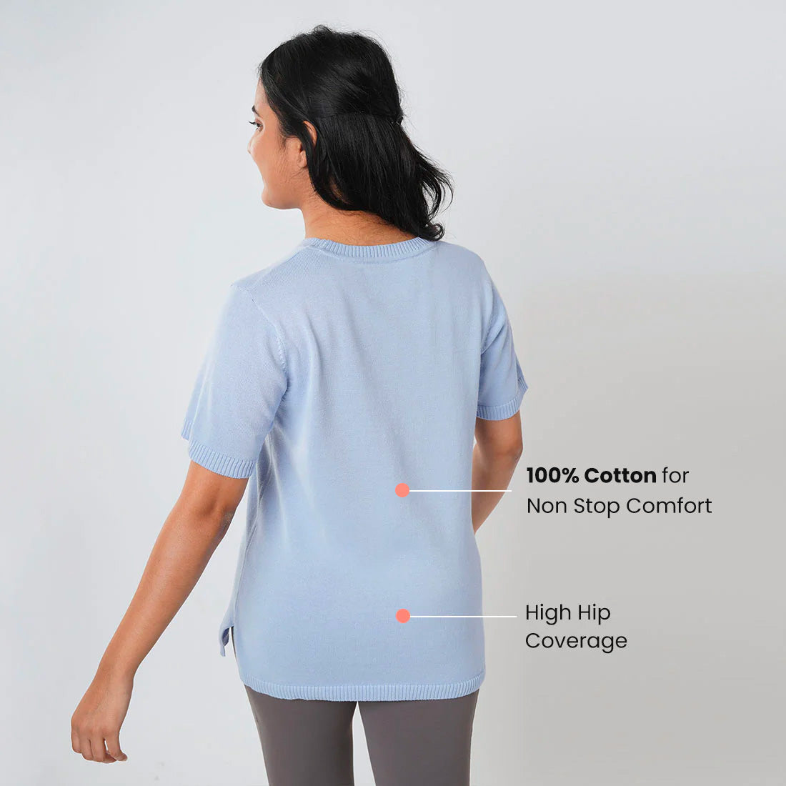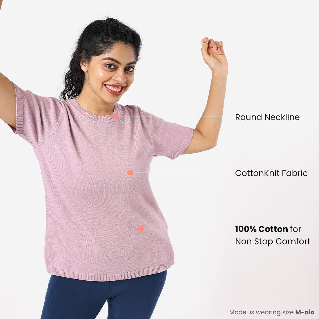 You told us you love cotton and we heard you. We bring you At-Ease Cotton Knit Tops which have comfortable, half sleeves and are made using 100% cotton ‘CottonKnit’ so you can move, breathe and sway non-stop. For thousands of women like you who love to move, we decided to enhance the level of comfort in our topwear and bring you a product that is durable, breathable and definitely lovable. And so, we made At-Ease Cotton Knit tops using 100% premium cotton to let you move free, breathe easy and fall asleep afterwards (just in case you want to).
