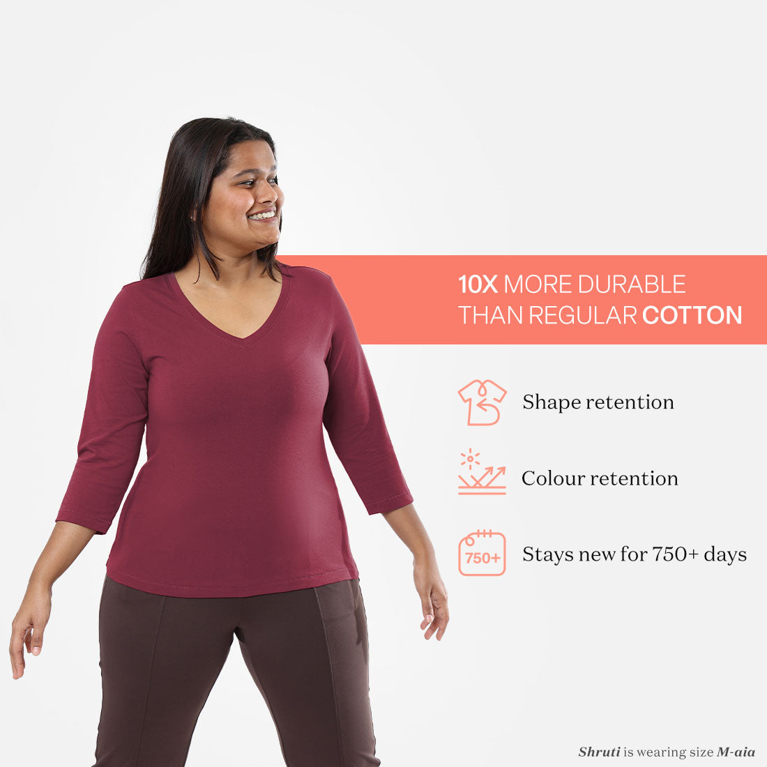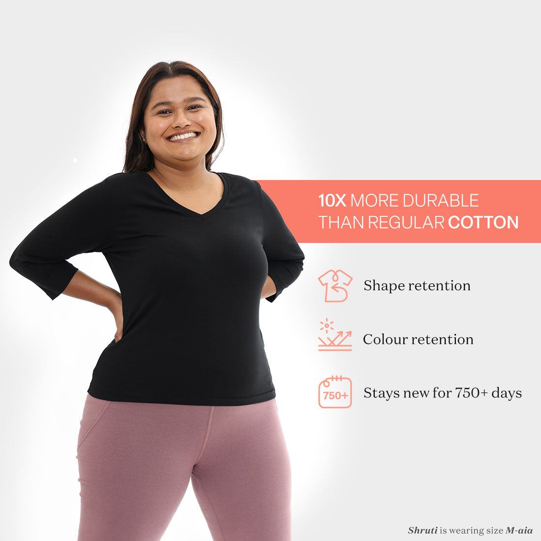 Literally, The Last Tee you will need to buy in a long, long time. We engineered this essential tee using cotton that is 10x more durable than regular cotton. It retains its colour, shape and size even after multiple washes. So, no shrinkage, no fading, no falling apart on you. Say hello to a long-lasting tee-lationship (750+ days) with your move-buddy for years to come.
